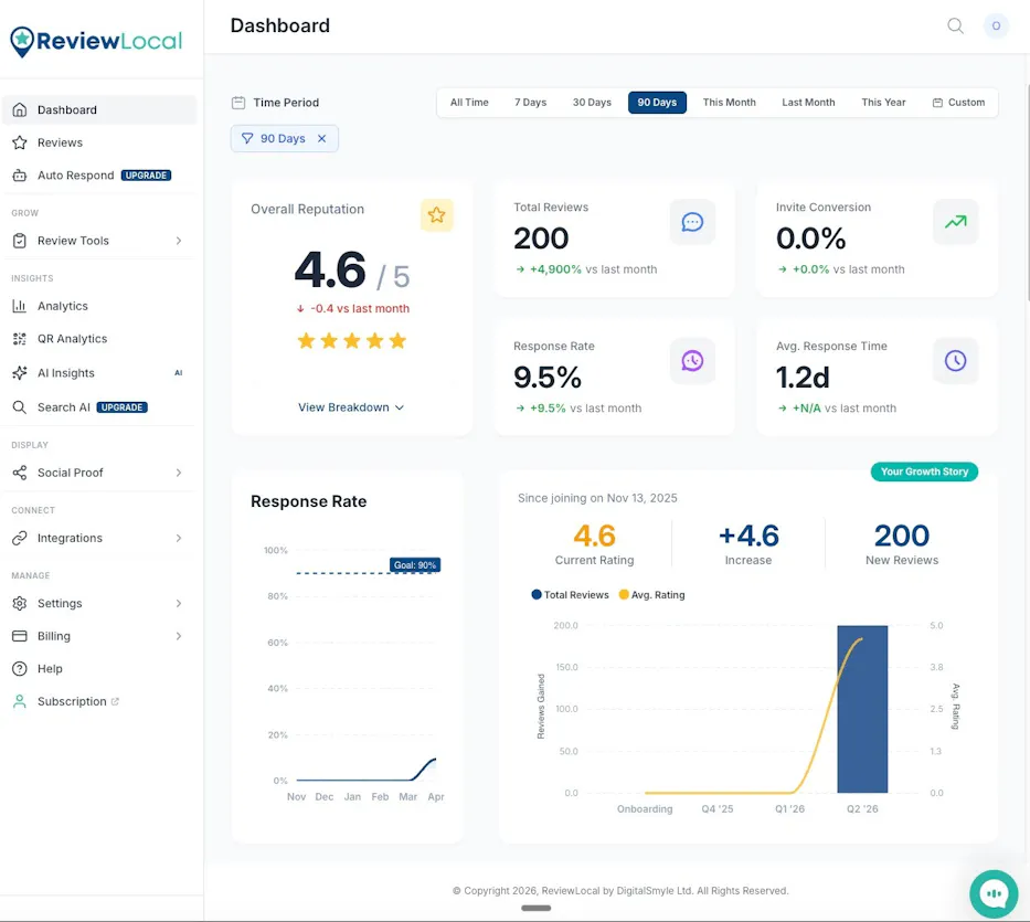 One login, complete control, monitor everything from a single dashboard. Never miss important reviews again.